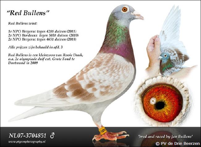 Jan Bullens is een verzamelaar van kinderen uit crack-duiven. Op de hokken in Oirschot verblijven kinderen van o.a. de 1e Nationaal en Internationaal Dax, 1e Nationaal Mon-Ventroux 1e Nationaal en tevens snelste duif van Nederland M. Marsan 1e Nationaal Pau '06 1e Nationaal St. Vincent 1e Nationaal tevens 2e Int. Perpignan Beste Pau duif over de jaren 2002-2006 3 kinderen van duiven met een 1e in de fondclub zuiderkempen. En zelf eigenaar van de superduif "Red Bullens" met 1-2-2-NPO