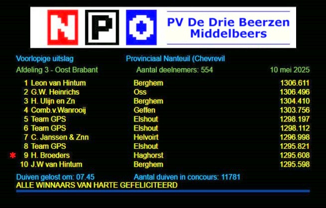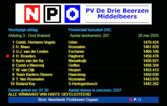 1-2-3-4 C.C. Midebo Mettet van 689 jonge duiven