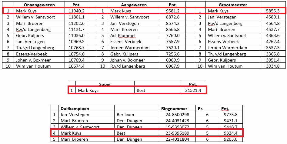 1e pr. CC.Midebo Dizy LaGros van 491 jonge duiven